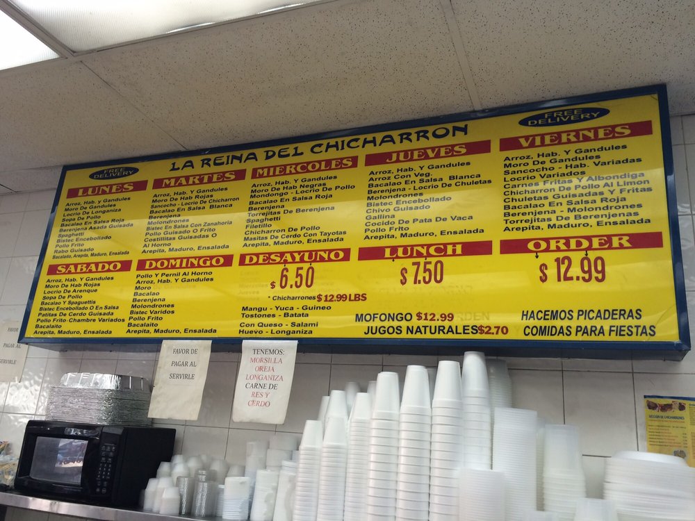 Introducing the menu at Elsa La Reina Del Chicharron, a Dominican restaurant located in New York City. This spot offers a unique blend of desserts and seafood dishes. With options for delivery, takeout, reservations, and catering services, this restaurant is a convenient choice for any occasion. The lively atmosphere, outdoor seating, and friendly waitstaff make it a great option for families and groups. From crispy chicharron to decadent desserts, the menu is full of delicious options that showcase the flavors of Dominican cuisine. The cozy setting with amenities like TV, Wi-Fi, and alcohol service adds to the overall dining experience. Don't miss out on trying out the specialties at Elsa La Reina Del Chicharron.